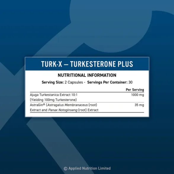 TURK-X is a standardised, high strength Ajuga Turkestanica Extract, delivering 100mg of Turkesterone per serving. Developed to support you through your training demands. With AstraGin® to support uptake and absorption.